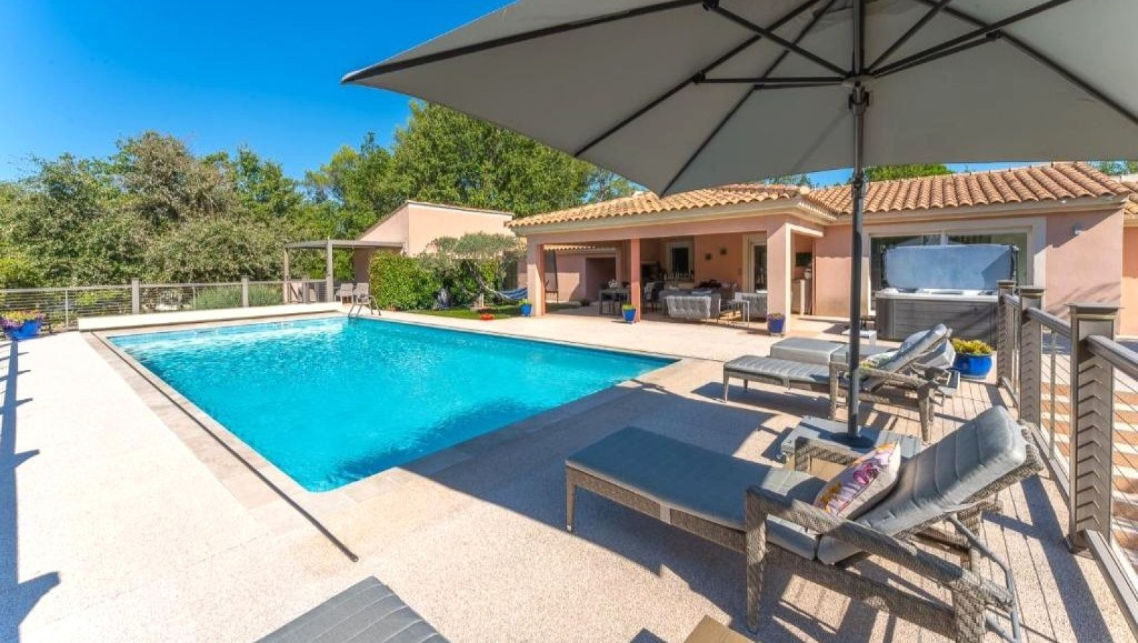 Les plus : Clim réversible de partout. Rénovation fait avec des matériaux de qualité et de luxe. Portail automatique. Volets électriques de partout. Vidéophone. La Fibre. Eau de ville. Le jardin est un havre de paix.