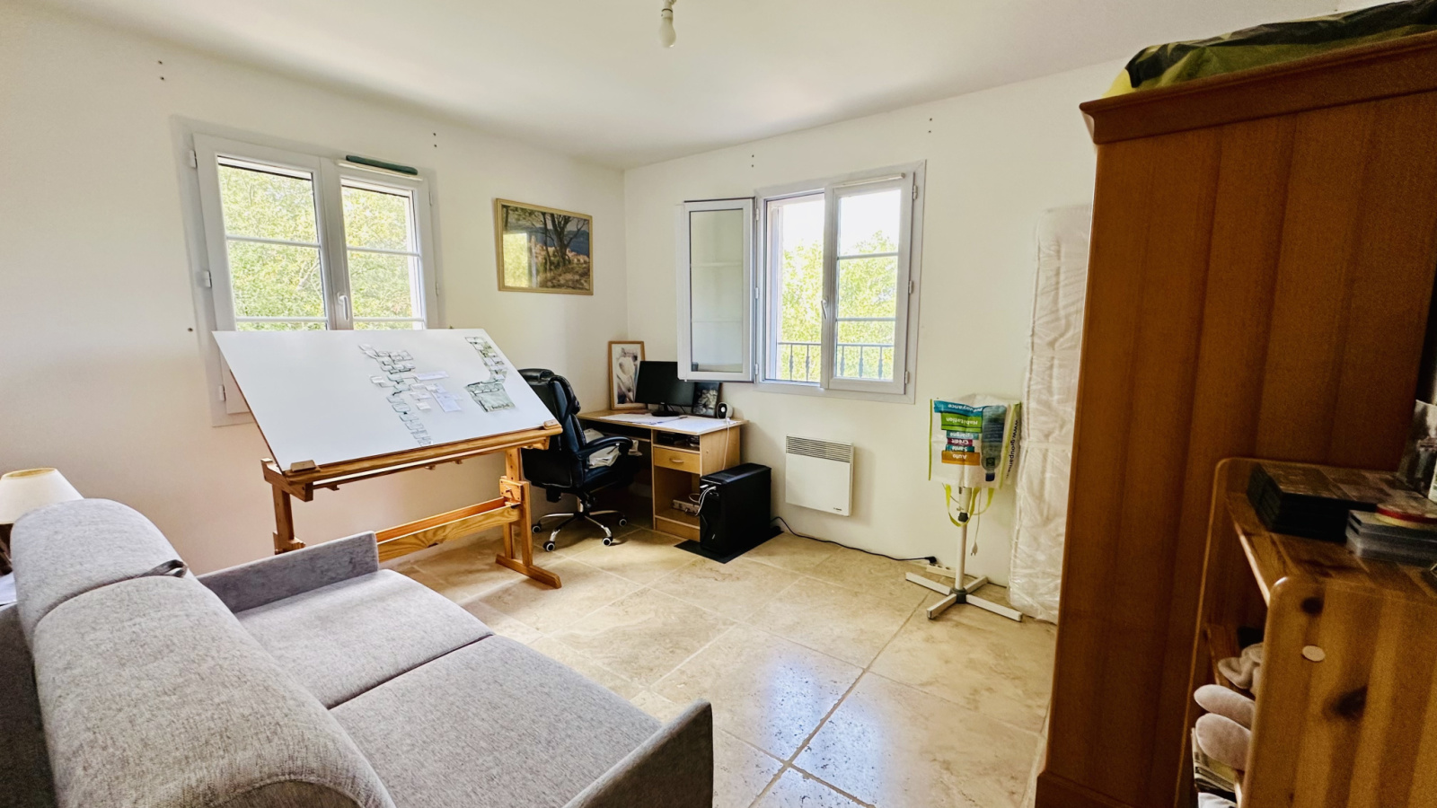 Un élégant escalier en colimaçon avec main courante en fer forgé, vous mènera ensuite à l’étage, où un couloir distribue trois belles chambres (dont une avec rangements), une suite parentale avec dressing et salle d’eau privative, ainsi qu’une salle de bains, et un WC indépendant. Chaque chambre disposant d'une belle vue dégagée (sur le Bessillon notamment).