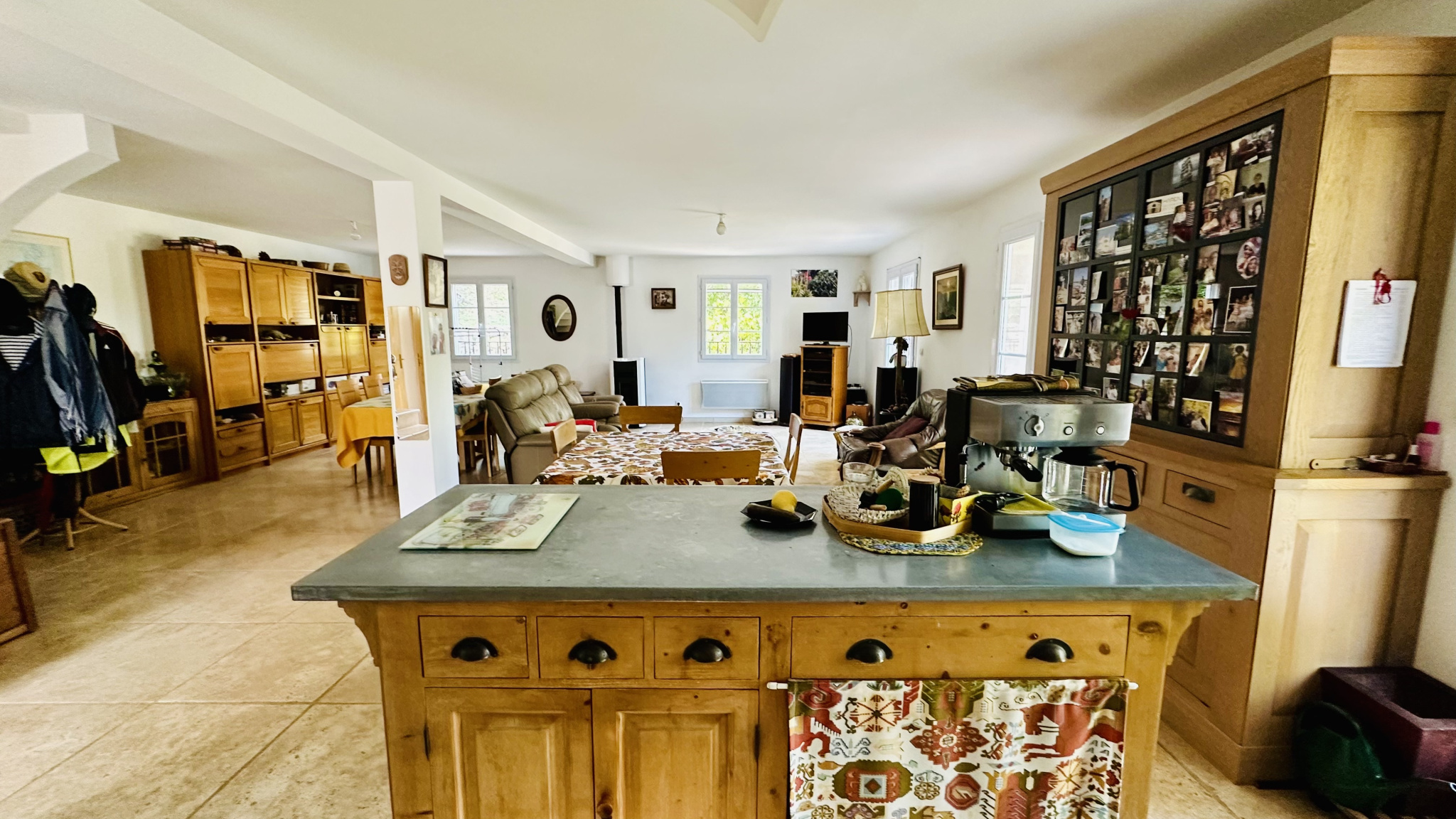 Vous serez accueillis, au rez-de-chaussée, par un hall d’entrée avec WC séparés et lave-mains, desservant un vaste espace de vie de 72 m² comprenant séjour, salle à manger et cuisine ouverte. Ce bel ensemble, équipé d’un poêle à pellets, s’ouvre sur une terrasse intimiste, agrémentée d’une pergola en fer forgé, avec dalles de Salernes, dominant la piscine et le jardin.