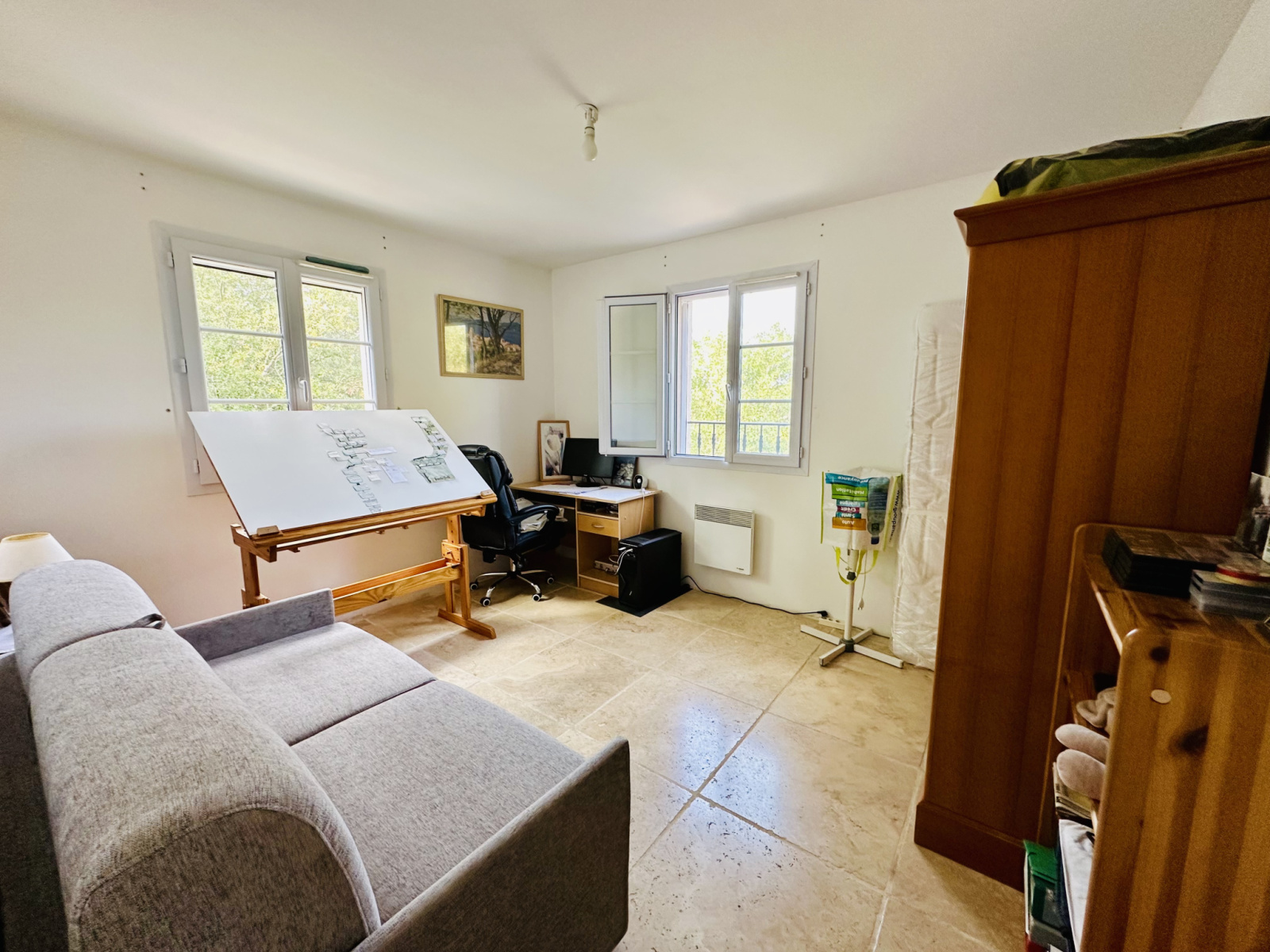 Un élégant escalier en colimaçon avec main courante en fer forgé, vous mènera ensuite à l’étage, où un couloir distribue trois belles chambres (dont une avec rangements), une suite parentale avec dressing et salle d’eau privative, ainsi qu’une salle de bains, et un WC indépendant. Chaque chambre disposant d'une belle vue dégagée (sur le Bessillon notamment).